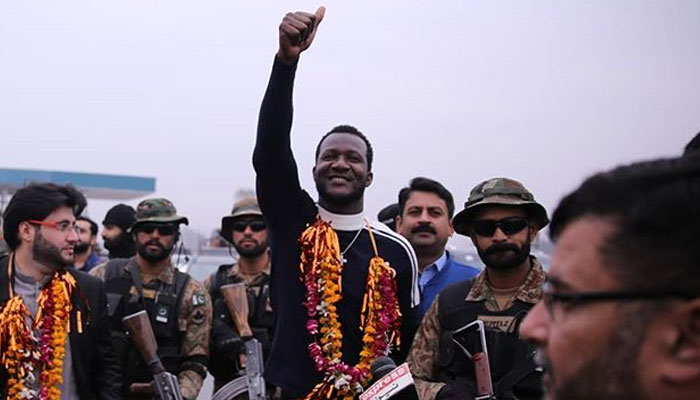 Well people of Pakistan really love the West Indian Cricketer Darren Sammy for all the good reasons he came to Pakistan to play cricket when no one else was willing to come and this is the reason why the people of Pakistan love him a lot. Sammy was one of the few International Players who came to Lahore to play the Final of PSL Season 2. He was the Captain of Peshawar Zalmi and Peshawar Zalmies has won the Final! Well recently Sammy came to Pakistan for Kit Launch Ceremony of Peshawar Zalmi. Sammy was received a warm welcome by Mr. Javed Afridi at Islamabad International Airport. Sammy was amazed to see the amazing response and love of the people in Pakistan. He was so delighted that he tweeted a couple of tweets expressing his gratitude for the love he has received in Pakistan, he wrote “United we stand divided we fall” Love makes the world go round. Nothing but love for the people of Pakistan.”